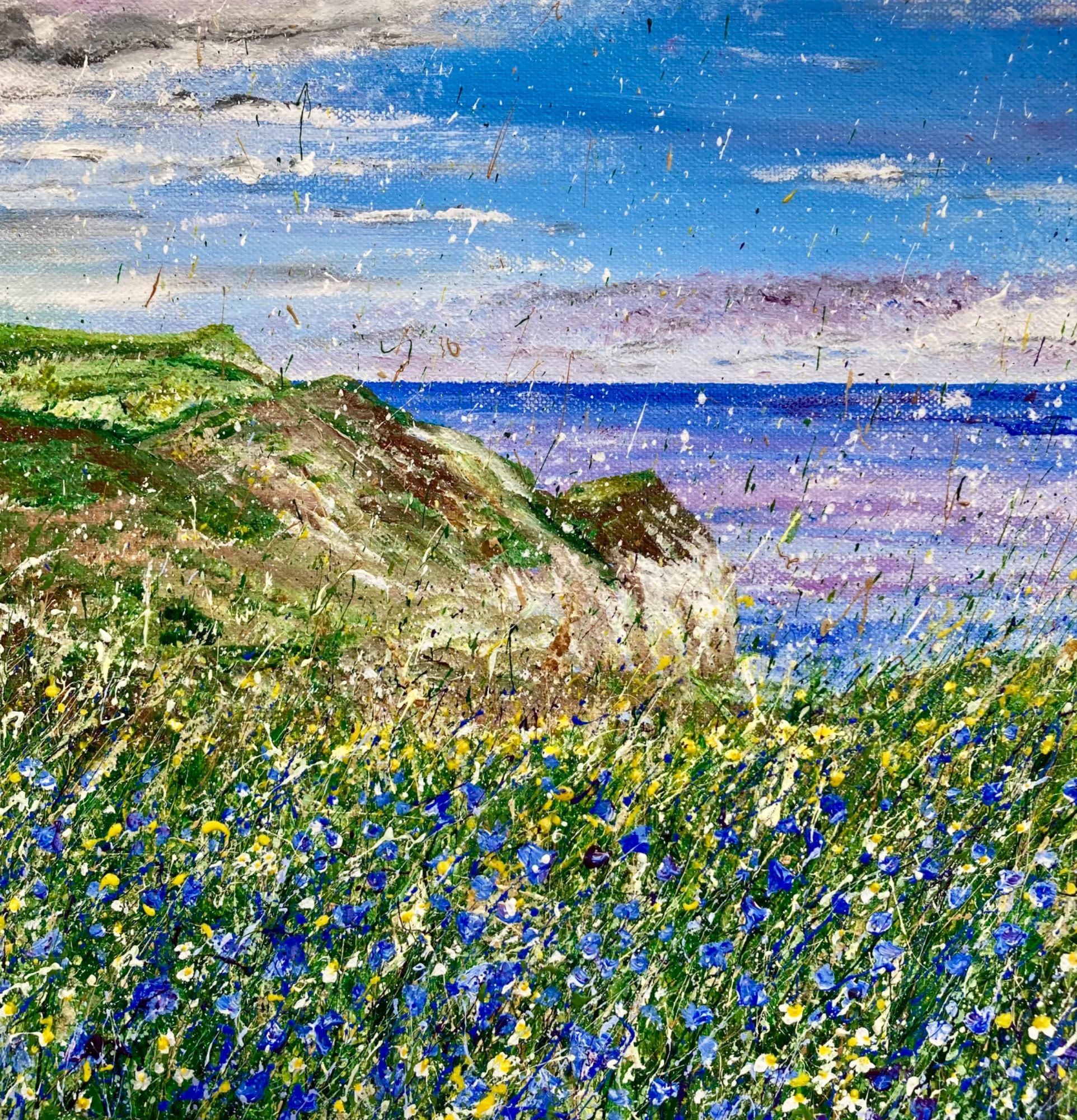 ”Featuring fresh, colourful and inspirational acrylics, Nicola has drawn her inspiration from the beautiful Yorkshire Coast and its abundant flora and fauna. She creates her pieces through building layers of colour and texture on the canvas, creating vibrant and alive explosions of colour and pollen”